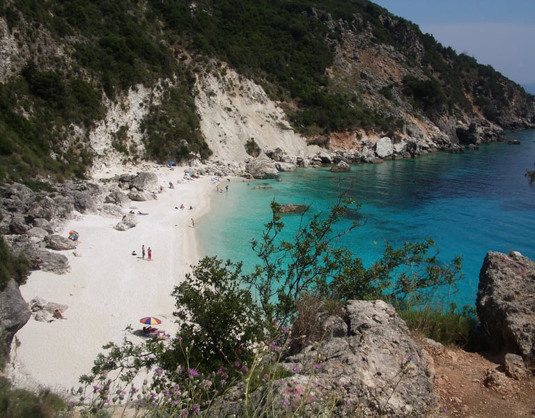 Locația plajei este pe partea stângă a golfului Vasiliki Lefkada.